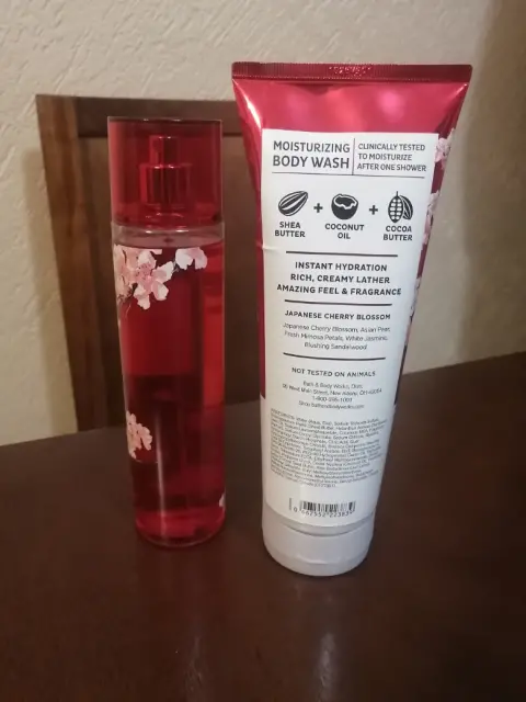 Duo bath and body japanese cherry blossom. Body y jabón corporal hidratante, el jabón corporal es de 296 ML. Este totalmente nuevo y el body lo use una vez. Notas de fragancia: flor de cerezo japonés, pera asiática, pétalos frescos de mimosa, jazmín blanco y sándalo ruborizado..