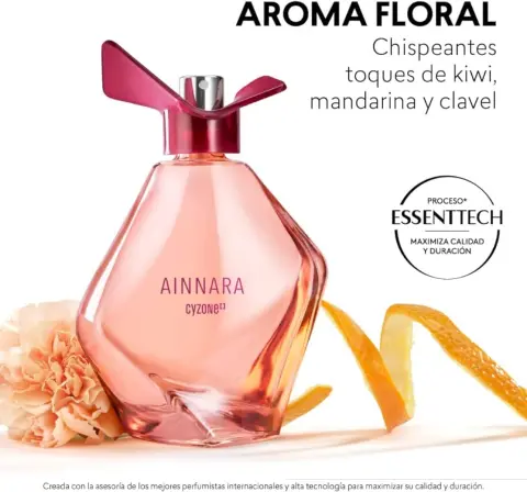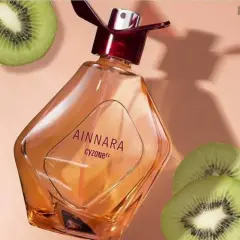 Fresco Perfume Ainnara. Chispeantes toques de kiwi, mandarina y clavel, presentación de 50 ml. Aróma fresco.