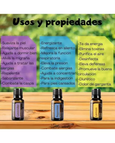 Kit de 3 aceites esenciales. El kit de introducción a los aceites esenciales incluye 3 frascos de 5 mL de los aceites esenciales dōTERRA Lavanda, Limón y Menta; para compartir bienestar.Incluye guía de usos.