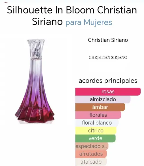 Perfume. Perfume nuevo y original para mujer ,( tengo varias piezas ) huele delicioso Silhouette in bloom de Christian Soriano De 100 ML. En las fotos indico las notas de olor