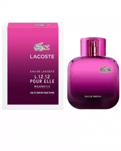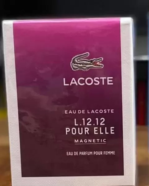 Perfume LACOSTE MAGNETIC NUEVO, en su empaque original y sellado. fragancia de la familia olfativa Floral Frutal para Mujer.Las Notas de Salida son naranja, clementina y mango, las Notas de Corazón son heliotropo, jazmín, rosa y hojas de violeta, las Notas de Fondo son pachulí, haba tonka y vainilla.