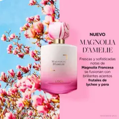 Perfume Magnolia D'Amelie L’Bel. Este es un perfume para mujer con una gran concentración de Magnolia Púrpura y toques frutales de lychee y pera. Esto aportará alta duración y fijación con poca cantidad.Totalmente nuevo en caja sellada.Precio de catálogo y tienda en línea $576