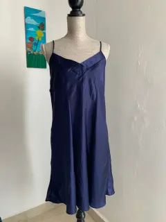 Camisón para dormir, Azul marino satinado, ajuste en tirantes.Cuello V ( talla 14/16)