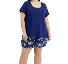 🌻 Conjunto de pijama de algodón,con pantalones cortos estampados 🙂🌻 Talla 2X 👌🌻Llega a la cadera, tres botones en la parte delantera de la playera, escote redondo, mangas cortas 🙂😊🌻Super cómoda 👌🥰