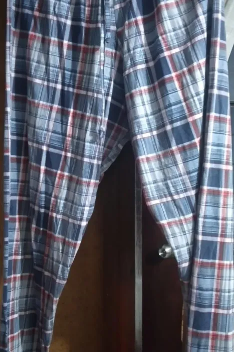Conjunto de pijama. Hermoso y ligero conjunto de pijama de dos piezas, pantalón a cuadros azul con rojo y blanco, con resorte y cintas ajustables, blusa azul claro. Aprovecha la promo, en la compra de esta y otra prenda de costo igual y te llevas los 2 en $ 280