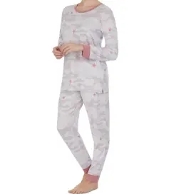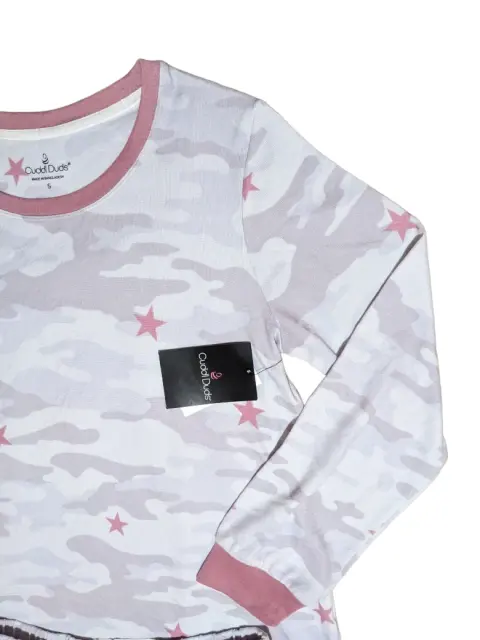 🌻 Conjunto de pijama camuflaje color gris 🩶. 🌻 Conjunto de pijama de dos piezas Cuddl Duds con top estampado y pantalones jogging 😊🌻Talla S 🙂 puede quedar a una talla M 👌🌻 Pantalones deportivos para un descanso con estilo y muy acogedor 😊🌻 Camiseta cuello redondo con banda acanalada, estilo jersey, mangas largas con puños acanalados 🌻Pantalones al tobillo, tejido de punto, tipo jogger acanalados, cinturilla con cordón para mayor ajuste ☺️