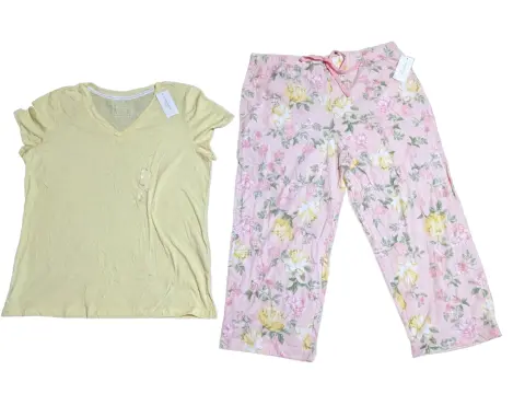 🌻 Conjunto de dos piezas de pijama Charter Club con estampado de flores grandes 🙂🌻 Camiseta de pijama con cuello redondo y manga corta 💛🌻 Pantalones de pijama Capri con cintura elástica 👌🩷🌻Tejidos ligeros y suaves al tacto 🌻Estilo y ajuste moderno y funcional 🌻Máxima comodidad 🌻Ideal para descansar, acostarse, dormir y más 😉👌🌻NOTA:los colores pueden variar un poco del original📸