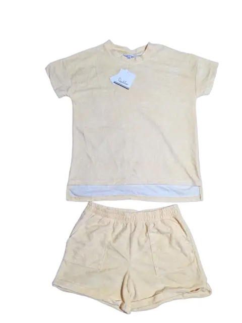 🌻 Conjunto de pijama Roudelain 💛. 🌻 Conjunto de dos piezas de pijama Roudelain color amarillo 💛🌻 Camisa pijama cuello redondo y manga corta 🙂🌻 Pantalones cortos con cintura elástica, dobladillo en la parte baja y dos bolsas a los lados 👌🌻Súper cómoda, suave y cálida 😊🌻100% poliéster 🙂🌻 Siéntete cómoda a la hora de dormir 😊🌻 No solo para dormir👌😉🌻🌻NOTA: los colores pueden variar un poco del original 📷