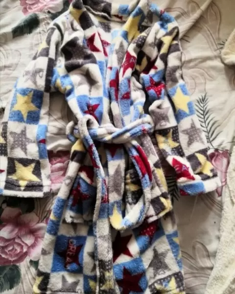 Paquete de dos batas unisex para niños, le queda a una talla 6 hasta talla 8, son ningún producto