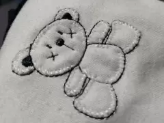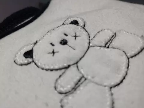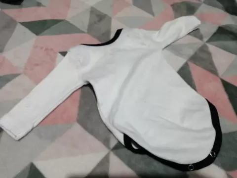 Pañalera de osito. Bonito pañalero blanco para bebe, tamaño de 3 meses, con osito bordado a altura del pecho, con broches a presión, con orilla en cuello y manga en azul marino