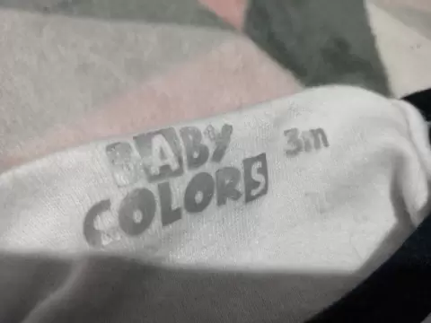Bonito pañalero blanco para bebe, tamaño de 3 meses, con osito bordado a altura del pecho, con broches a presión, con orilla en cuello y manga en azul marino
