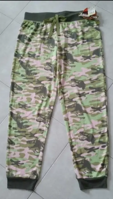 Pantalón pijama talla S, marca jurassic park, tipo militar . Medidas cintura 38 cms con jareta ajustable, cadera 48 cms y largo 95 cms.