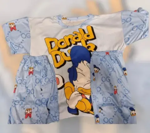 Pijama de 3 piezas (playera,short y pantalon) Unitalla , color azul y con figra de Donald.