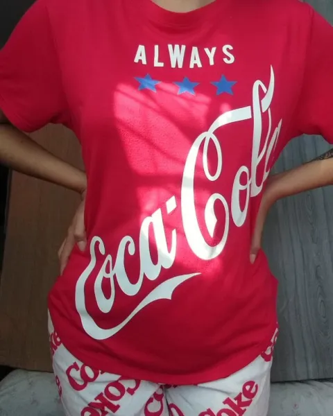 Pijama Coke Coca-Cola. Hermosa pijama Coke Coca-Cola , muy suave y cómodo 🤩😍no son el conjunto pero quedan muy bonitos juntos quedan de chico-mediano muy bien . Pantalón M y blusa XL reducida Para ti amante de las aguas negras del Capitalismo 🤗😍