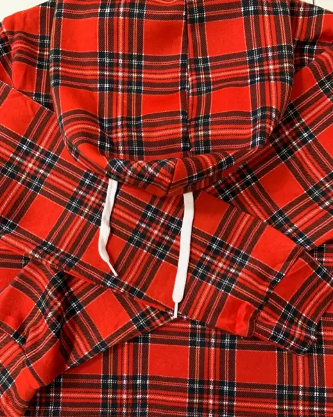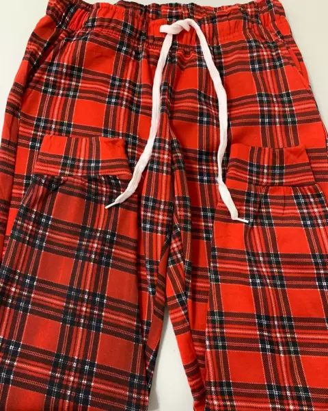Pijama de franela a cuadros color rojo. Pijama súper calientita de franela a cuadros en color rojo. La sudadera es L, el pantalón en M, pero queda bien a talla M.