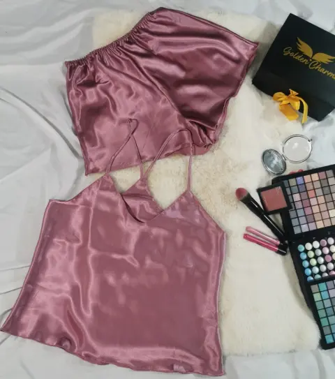 Pijama en satin suave y fresco. Pijama elaborada en satín, ideal para estos días de verano por ser una tela suave, fresca, cómoda y delicada.El conjunto consta de short y blusa, talla S, color rosa. Una buena opción para que no pierdas tu estilo ni a la hora de ir a dormir.