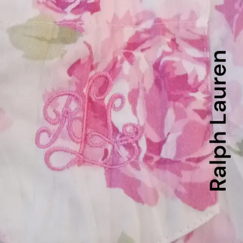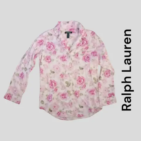 Blusa pijama Ralph Lauren talla M material 100% algodón, botones al frente, cuello con solapa, bies blanco en todo el filo de la prenda, bolsillo bordado con letras de la marca. 42cm hombros 50cm axilas 72cm largo.