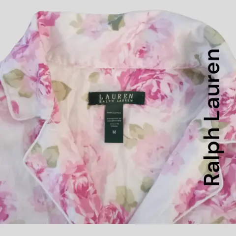 Pijama Ralph Lauren tM. Blusa pijama Ralph Lauren talla M material 100% algodón, botones al frente, cuello con solapa, bies blanco en todo el filo de la prenda, bolsillo bordado con letras de la marca. 42cm hombros 50cm axilas 72cm largo.