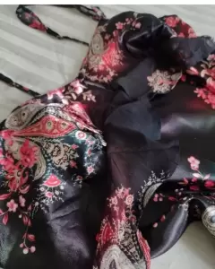 Pijama satinada negra con flores. Linda pijama tela suave satinada con diseño de flores y fondo negro, es de tirantes y queda muy sexy 💞