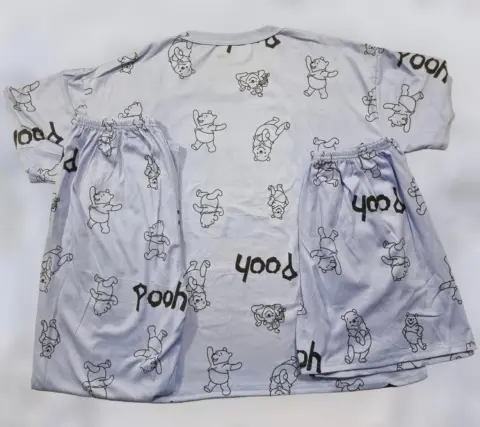 Pijama de 3 piezas (playera,short y pantalon) Unitalla, color azul, con figura de Pooh.