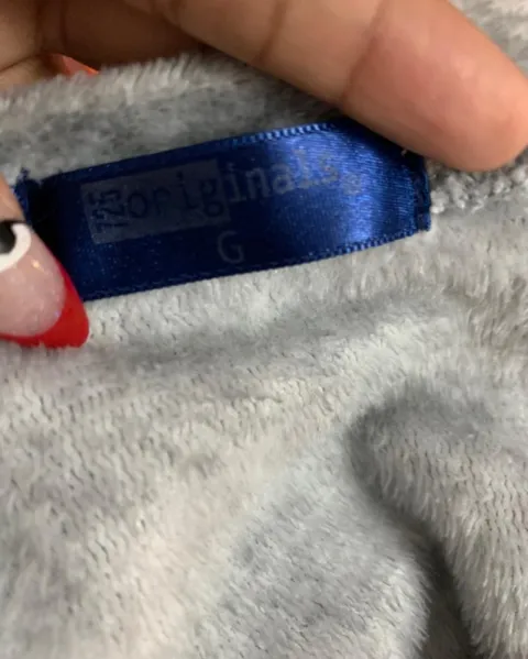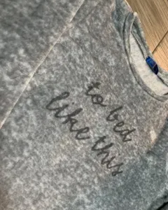 Bonita playera tipo sudadera, es de pijama. Esta en buen estado, unicamente la etiqueta del interior se fue despintando. Viene algo corta y reducida