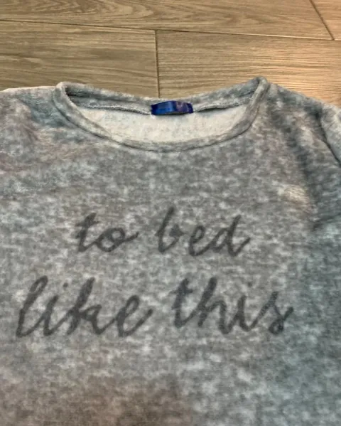 Playera/sudadera de pijama. Bonita playera tipo sudadera, es de pijama. Esta en buen estado, unicamente la etiqueta del interior se fue despintando. Viene algo corta y reducida