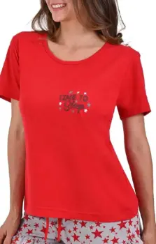Hermosa pijama con colores navideños ,En color gris con rojo.Tiene short y playera .Nueva con etiqueta Talla : CH En excelente precio ,marca de sears .