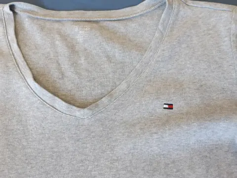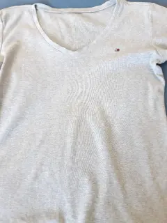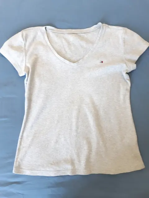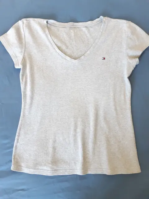 Blusa gris claro Tommy Hilfiger. Blusa de algodón grueso en gris claro Tommy Hilfiger, cuello en V, talla M