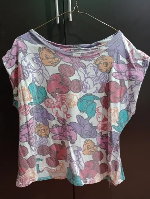 Blusa sin mangas con diseño de disney. Detalle: en físico, puede verse viejita la prenda pero no tiene roturas y está en muy buen estado.✨Talla M✨No trae etiquetas✨Precio a tratarMedidas:-Cuello: 42cm- Pecho: 51 cmEstoy abierta a ofertas. :))Recuerde que también puedo hacerle un paquete de los productos que más le hayan gustado de mi perfil y que desee comprar. 😸📦¡Gracias!