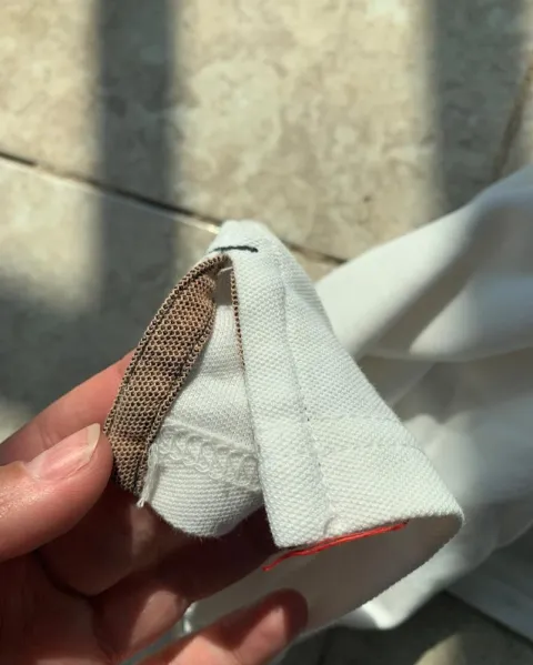 Blusa tipo polo, se han desgastado los colores de las cintas a los lados, sin embargo está en muy buen estado, con el cuidado adecuado podrían teñirse sin problema