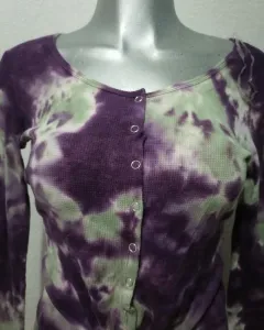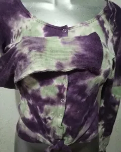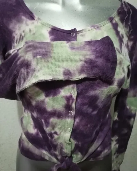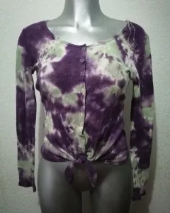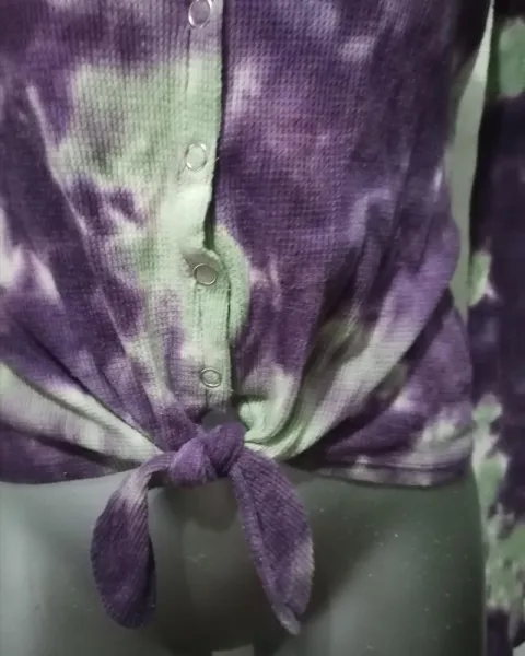 Hermosa blusita térmica, manga larga, de botones, multicolor, con nudo en la parte inferior. Medidas largo 57cm, largo Manga 59cm, axila a axila 45cm, hombro a hombro 40cm