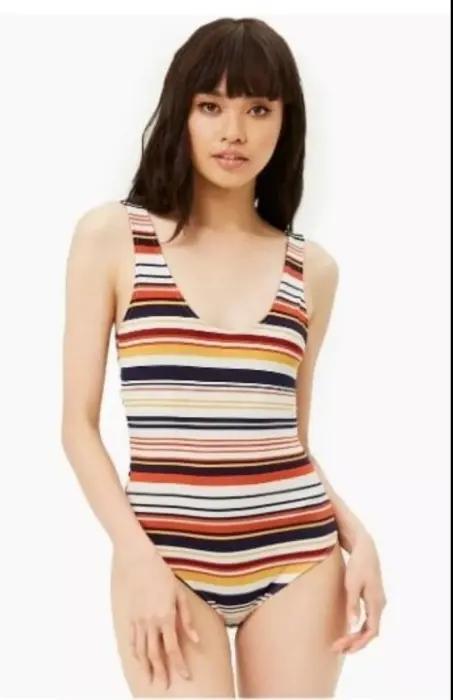 Descripción:Body de rayas multicolor marca Forever 21 talla S, se uso solo dos veces.