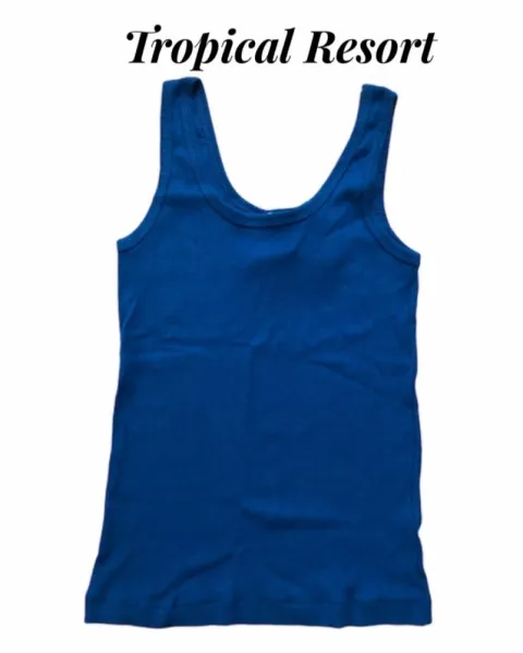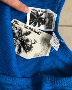 Camiseta azul TROPICAL RESORT. Camiseta color azul rey de dama, dice talls L pero queda a talla XS -S, nueva y con etiquetA