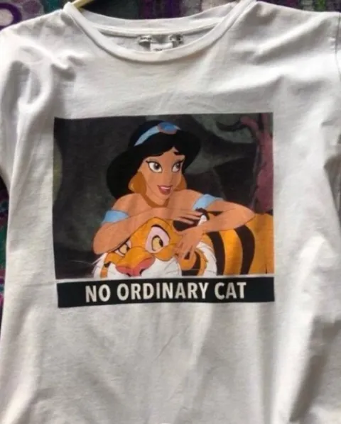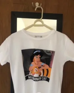 Camiseta estampada, princesa Jazmin, marca lefties, talla s, puesta una sola vez, en excelente estado, sin defectos ni detalles.