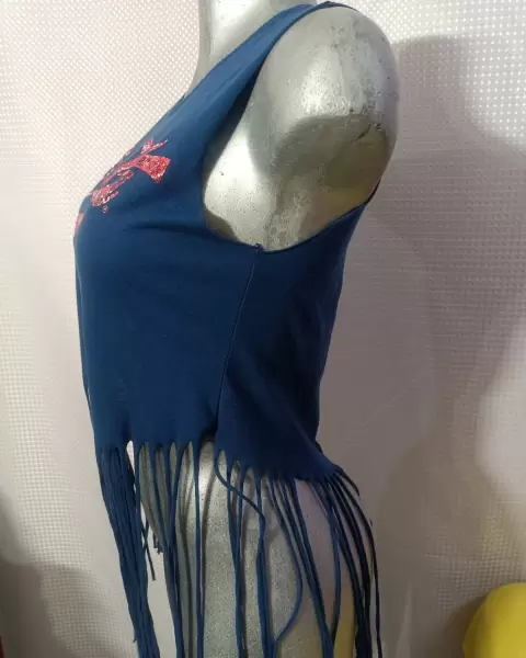 Crop top con flecos 😍♥️. Lindo Crop top azul con flecos sin mangas sin detalles ♥️💢💯💜❤️💚💙