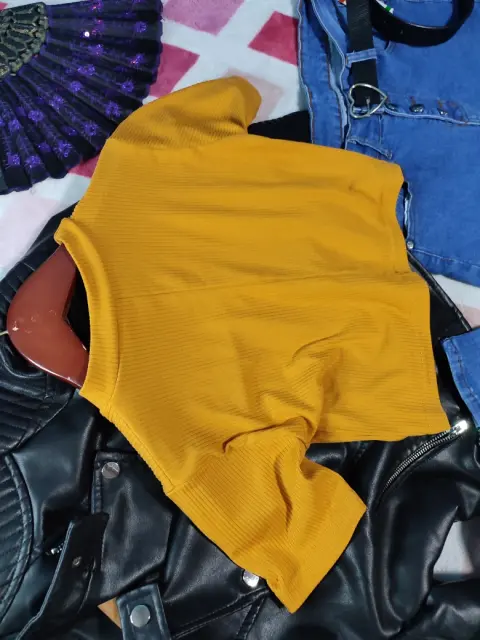 Crop top Mostaza. •Te interesa? Escucho ofertas•Deseas varias prendas? armo tu paqueteCrop top Amarillo mostaza, tela rib, cuello redondo, linea de costura en la espalda. Unitalla. Nuevo sin etiqueta.