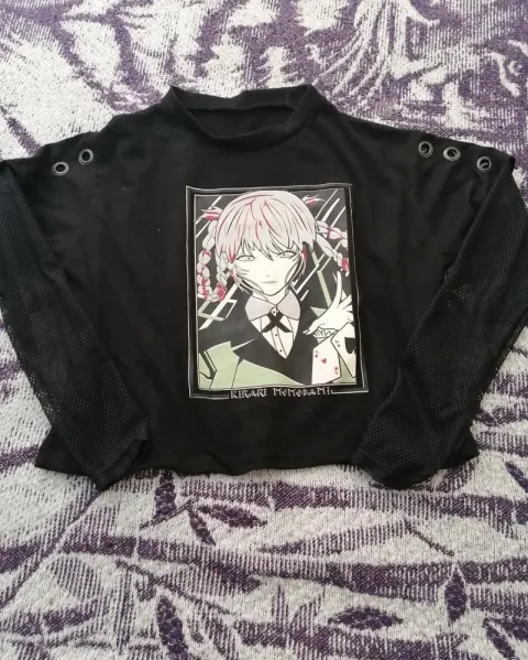 Si te gusta haz Tu mejor oferta no esperes a que te lo ganen, hagamos un trato... Bonito crop top con estampado de anime y manga transparente.Hombro 37Axila 43Largo 40