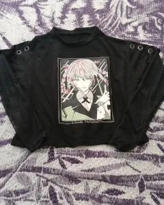 Crop top negro con transparencias n transparencias. Si te gusta haz Tu mejor oferta no esperes a que te lo ganen, hagamos un trato... Bonito crop top con estampado de anime y manga transparente.Hombro 37Axila 43Largo 40
