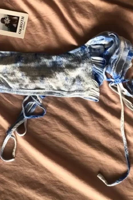 Crop top / OKBOTH. Lindo crop top, tie dye azul, tiene cintas largas y medias mangas . Luce increíble . la foto 1 es como ejemplo de como luce.
