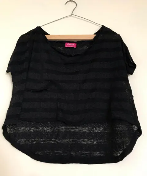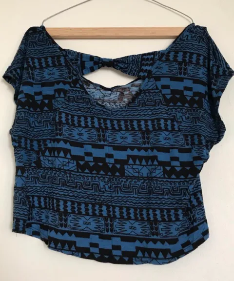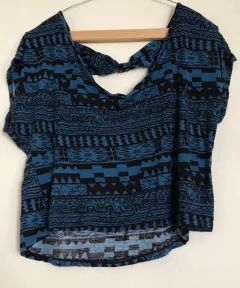 Crop top azul indigo con negro, talla L marca LOB. Crop top negro con transparencias, tall L Shasa