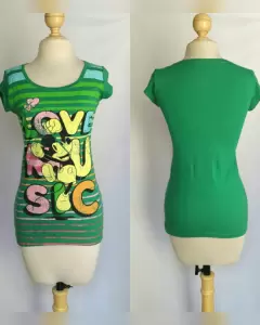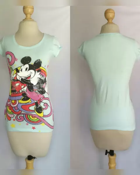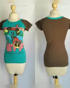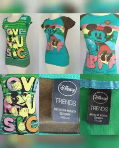 PAQUETE 3 playeras Disney efecto desgaste tonos VERDE AQUA/VERDE PERIQUITO/TABACO C/VERDE PERSA, cuello redondo y manga corta. Talla M. Dimensiones cms: AQUA 34.5 hombro, 44 axila, 46.5 zona baja, 63.5 largo, 8 largo manga; VERDE P 36.5 hombro, 39.5 axila, 47 zona baja, 66.5 largo, 8 largo manga; TABACO 34 hombro, 40.5 axila, 46 zona baja, 61 largo, 12 largo manga. 100% algodón. P/lavado en casa.***NUEVAS, NUNCA SE USARON, LES QUITE LA ETIQUETA Y NO ME QUEDARON***
