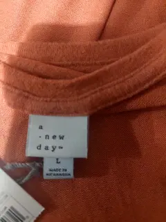 Playera A New Day. Playera tela suave, talla L, pero viene amplia para una XL a 2 XL, color naranja teure, muy comoda y suave tela, totalmente nueva. Medida axila a axila 120 cm y de hombro 66cm.