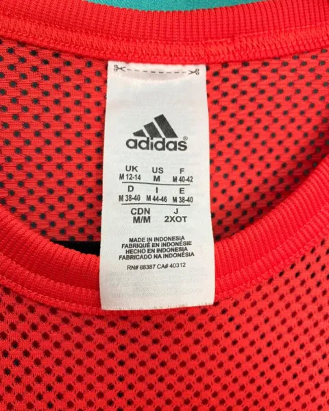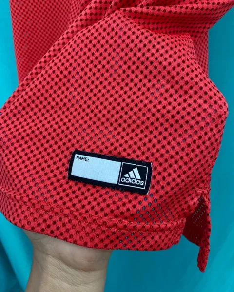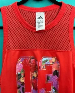 Playera Adidas Basketball. El color es como naranja quemado no es del todo rojo como tal; Es talla M con fit OversizedQueda así como relajada idea para usarse encima de tops deportivos, ideal Para gym y actividades deportivas