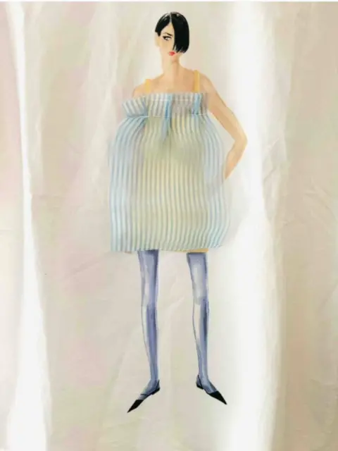Las playeras con texto o con aplicaciones siempre están de moda! NUEVA! Hermosa y de buena calidad playera blanca con chica al frente en estilo tridimensional con su vestido rayado. Es talla M pero puede queda a Ch para que tenga caída y luzca el decorado. Más opciones en mi clóset.