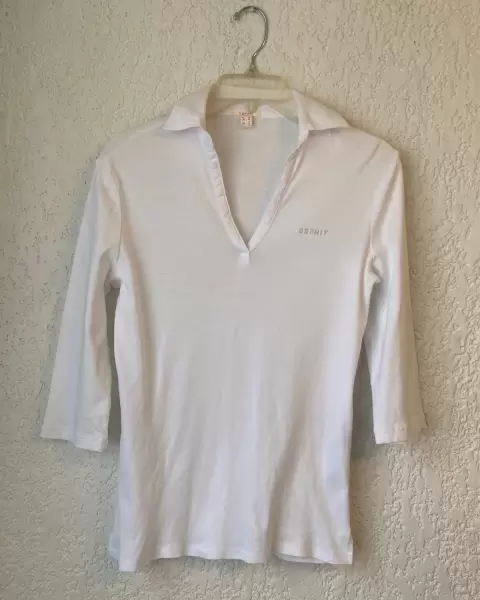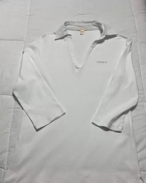 Playera blanca Esprit T/M. Bonita playera, sport, con cuello y escote en V, manga 3/4, T/M, buen estado, sin detalles.