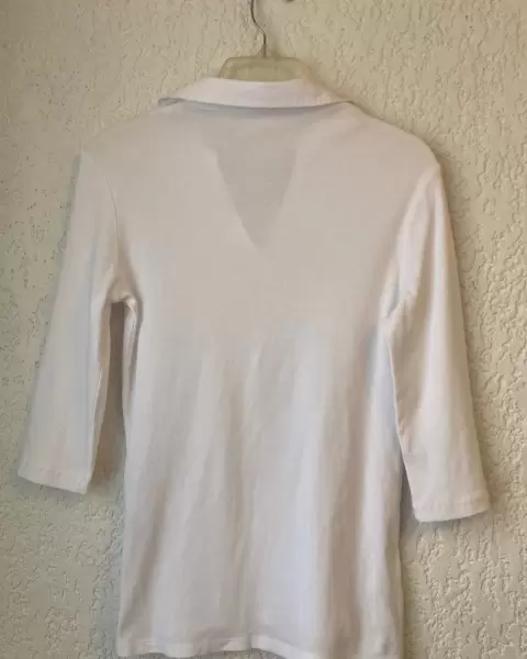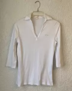 Bonita playera, sport, con cuello y escote en V, manga 3/4, T/M, buen estado, sin detalles.