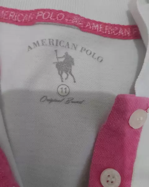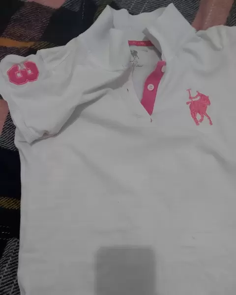 Playera blanca polo. PLAYERA POLO ROSA CON BLANCO EN TALLA 11 Y CON NUMERO 3 EN LA MANGA DERECHA
