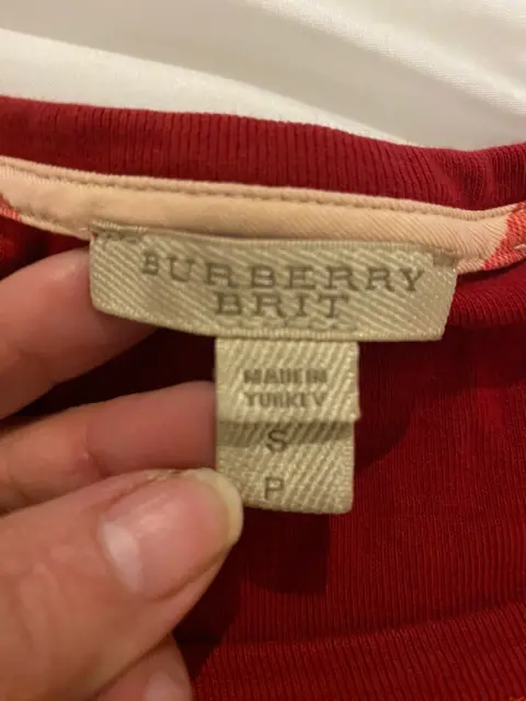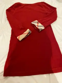 Linda playera rojo intenso marca burberry manga 3/4 con terminacion con tela de la marca detallito un pequeño oyito en la parte de abajo como se muestra foto facil de sursir es por eso el precio