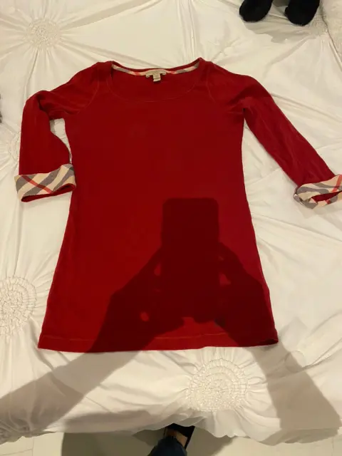 Playera Burberry. Linda playera rojo intenso marca burberry manga 3/4 con terminacion con tela de la marca detallito un pequeño oyito en la parte de abajo como se muestra foto facil de sursir es por eso el precio
