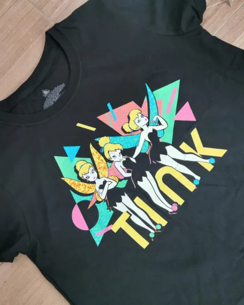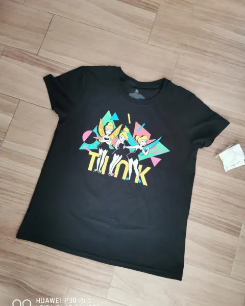 De la Disney Collection de liverpool. Talla L color negro con estampado de campanita. Manga corta. Sin detalles, completamente nueva.
